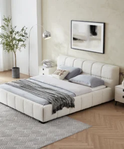 Elevate your bedroom with the Cushy Boucle Fabric Bed – a perfect blend of French creamy elegance and modern minimalism. Designed for spacious interiors, its plush boucle upholstery exudes soft luxury, while the clean lines and low-profile silhouette bring a serene, airy feel to any space. Ideal for those who appreciate a touch of quiet opulence in their everyday living.