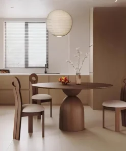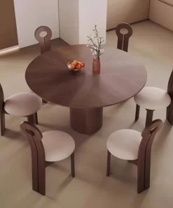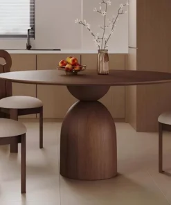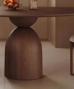 Marino Round Dining Table – Mid-Century Style Pedestal Table in Walnut Wood for Small Spaces