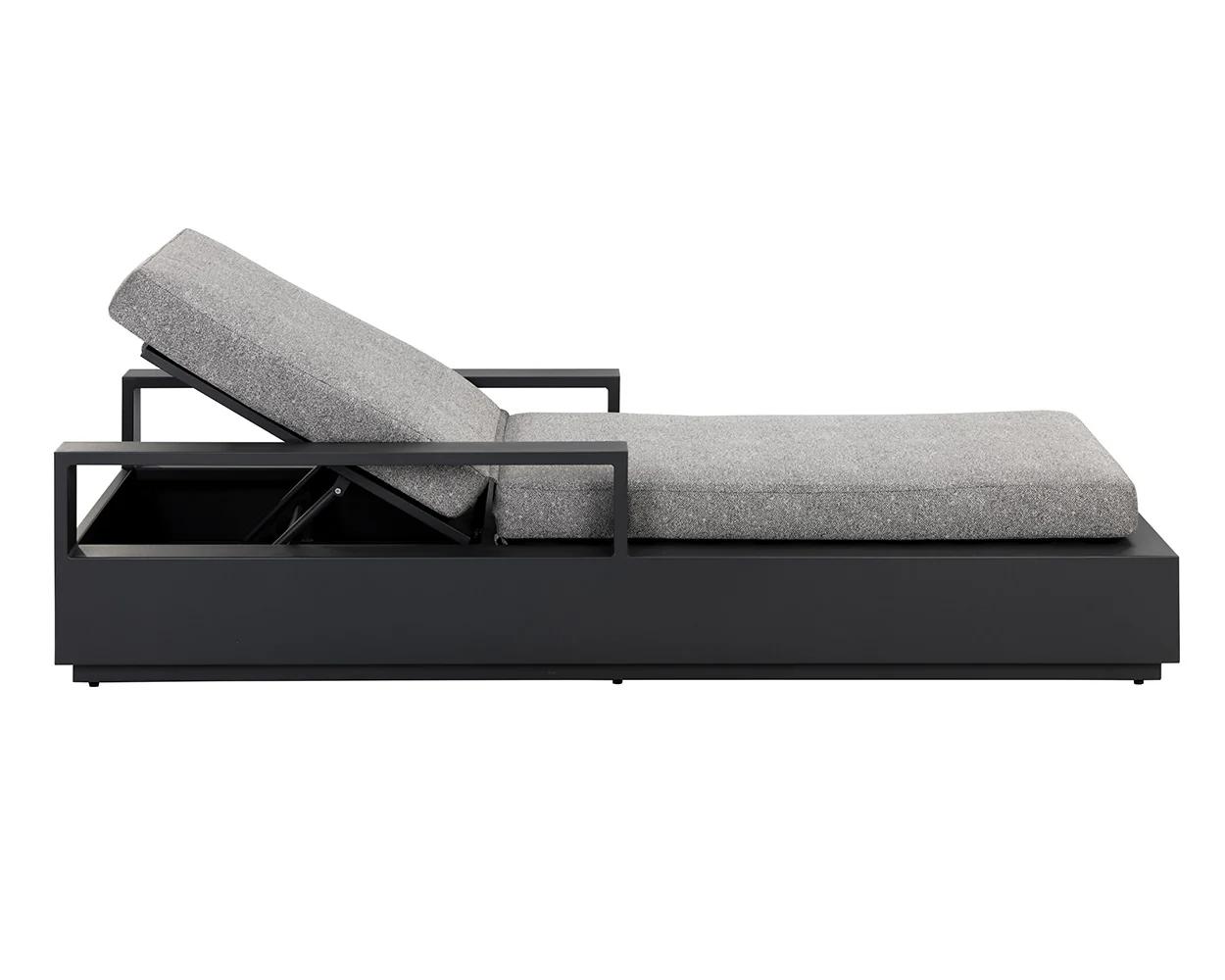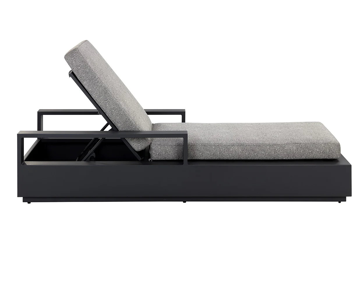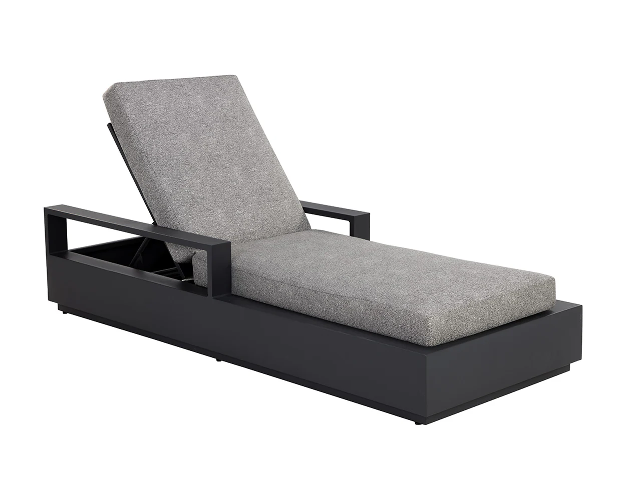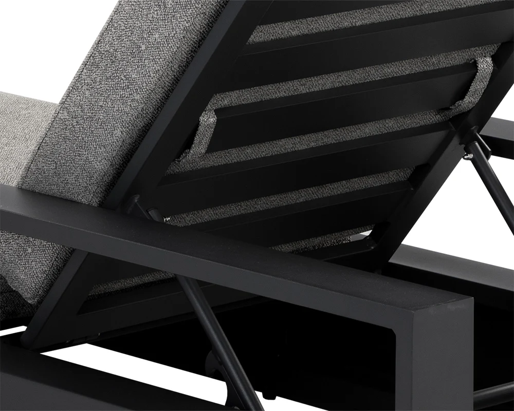 Cherish the outdoors with the Tavira Lounger that offers comfort and laid-back style. Stocked in lanikai salt and pepper fabric and completed with a powder-coated charcoal aluminum frame.